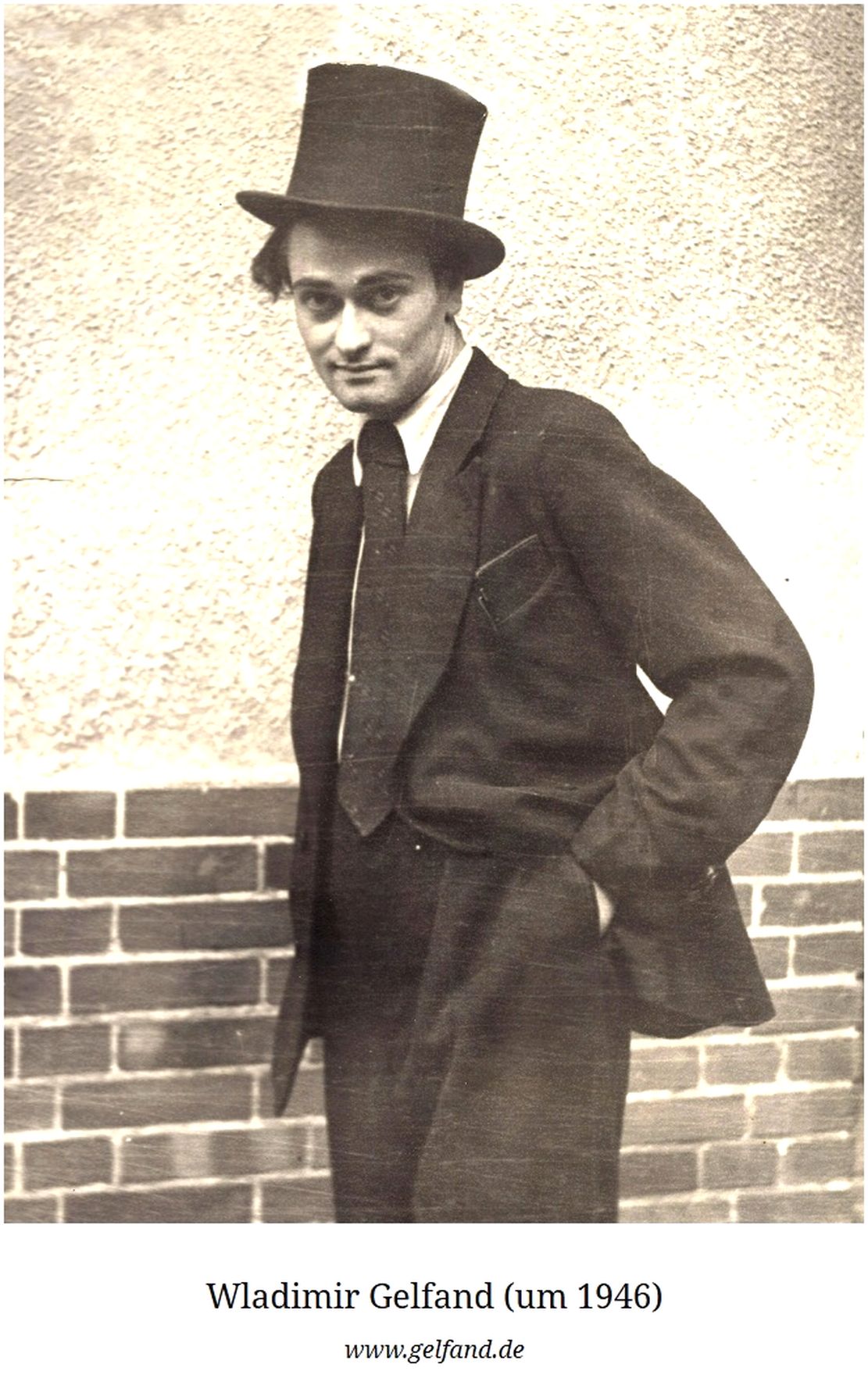 какое впечатление он на них производит. Несколькими месяцами ранее, 28 декабря, он описал себя так: «Я молод и, как мне все больше кажется, интересный человек с неуравновешенным характером, с нервами, чувствительными, как натянутые струны и с, иногда, плаксивым голосом, длинным носом и большим ртом; временами вспыльчивый, иногда замкнутый человек, который глубоко в своем сердце прячет неприятности и злость; с черными бархатными глазами и живым сердцем — это я считаю основными достоинствами своей личности». Он ведет подробный дневник и иногда отправляет фотографии домой, в Украину. Гельфанд — энтузиаст. Он восторженно относится к Сталину и советской идее, он восторженно относится к романтической любви и художественной литературе, особенно русской. Он открывает для себя фотографию, любит кино и страдает от того, что не умеет танцевать. Берлин, как он отмечает, его очаровывает. Кроме того, он может себе многое позволить. «В Берлине все привлекает мое внимание: вывески и витрины магазинов манят, но по сути, вы тратите деньги на всякие безделушки, картинки и ненужности, без которых совершенно можно обойтись... Но не с моим характером.« Около Пасхи он размышляет о том, почему немцы ведут себя теперь так, как ведут себя. «Впечатления сменяют друг друга так быстро, что их невозможно зафиксировать на бумаге, даже при всем желании.««Немцы становятся наглыми. Они больше не проявляют к нам уважения, не боятся совершать мелкие подлости и всячески досаждать нам. Они отвратительно назойливы и попрошайничают, и вообще вдруг обнаружили в нас хороших «товарищей», с которыми можно вести себя совершенно непринужденно». В словах Гельфанда слышны удивление и горечь. Немцы убили много членов его семьи со стороны отца. |