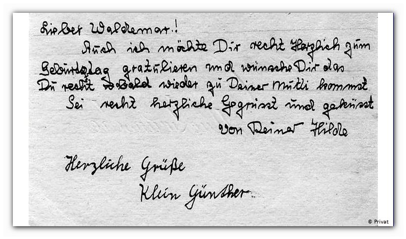 Dies ist einer der vielen Briefe deutscher Freundinnen, die Wladimir Gelfand aus Deutschland mitgebracht hat. Er beginnt mit den Worten: „Lieber Waldemar!“ – und endet mit „Herzliche Grüße“, Küssen und der Unterschrift: „Deine Hilda“.