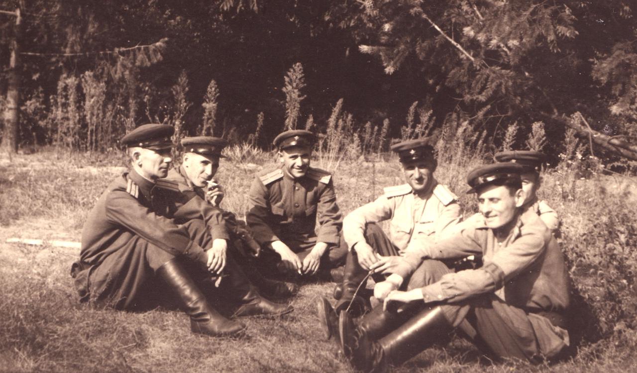 (二战):红军士兵在野外休息,1945–46 年。家庭档案。 | ||
