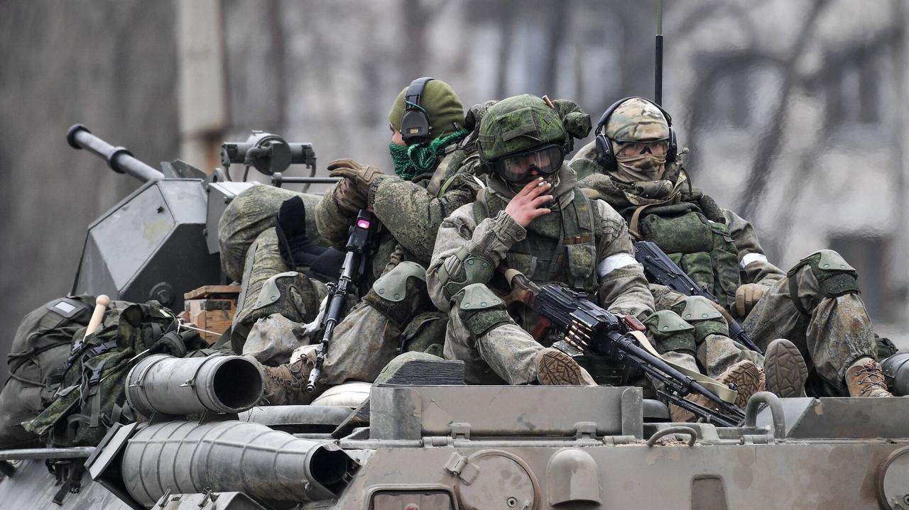 (Gegenwart): russische Soldaten auf gepanzerten Fahrzeugen, Kriegsgebiet Ukraine, 2022–25. | ||