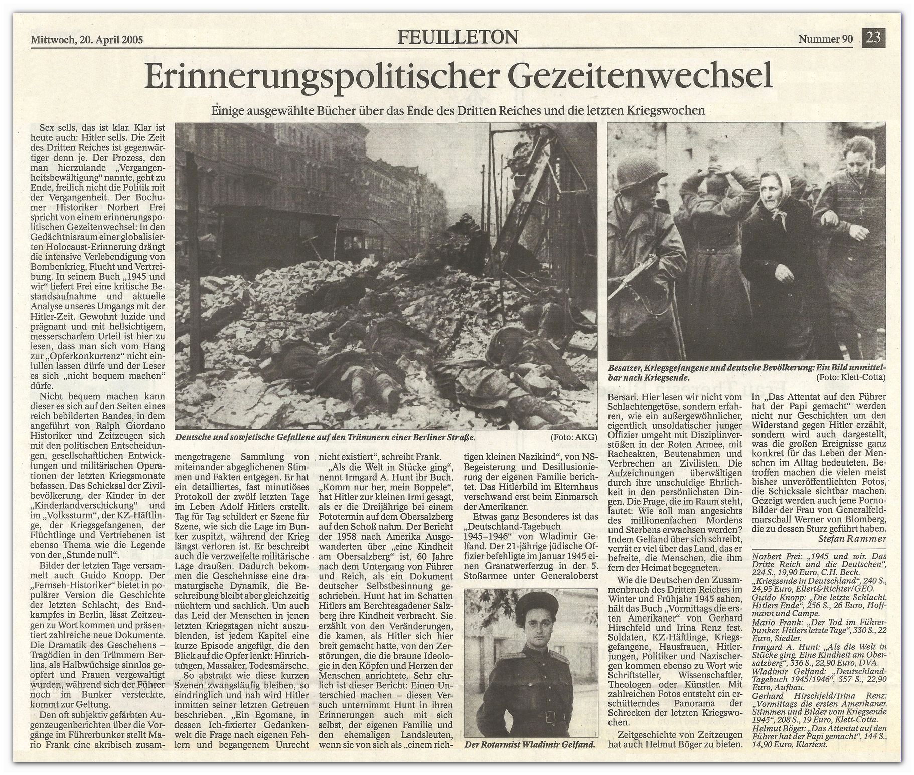 завершению прошлого. Историк из Бохума Норберт Фрай говорит о «приливных изменениях в политике памяти»: на фоне коллективного воспоминания о Холокосте набирают силу темы бомбардировок немецких городов, бегства и изгнания.