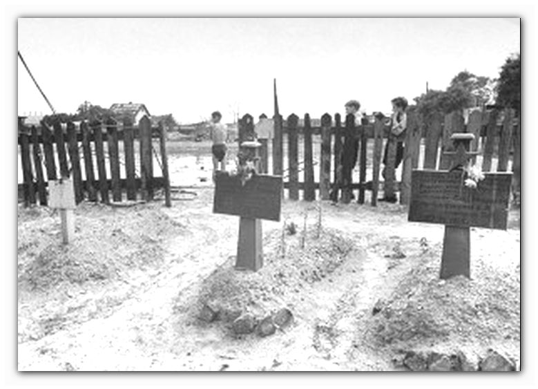 усыпан зеленью, могилы, отмеченные тремя деревянными
