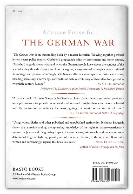 «В своей выдающейся новой книге „Немецкая война“ историк Оксфордского университета Николас Старгардт обращается к письмам и дневникам немецких солдат и других свидетелей. Он детально показывает, как культурная нация сошла с ума, как обычные солдаты стали массовыми убийцами, и как немецкие церкви отворачивались, когда убивали невинных».