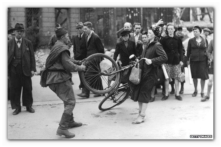 스탈린의 군대는 나치의 수도로 향하면서 셀 수 없는 여성들을 강간하였습니다. 이런 사실은