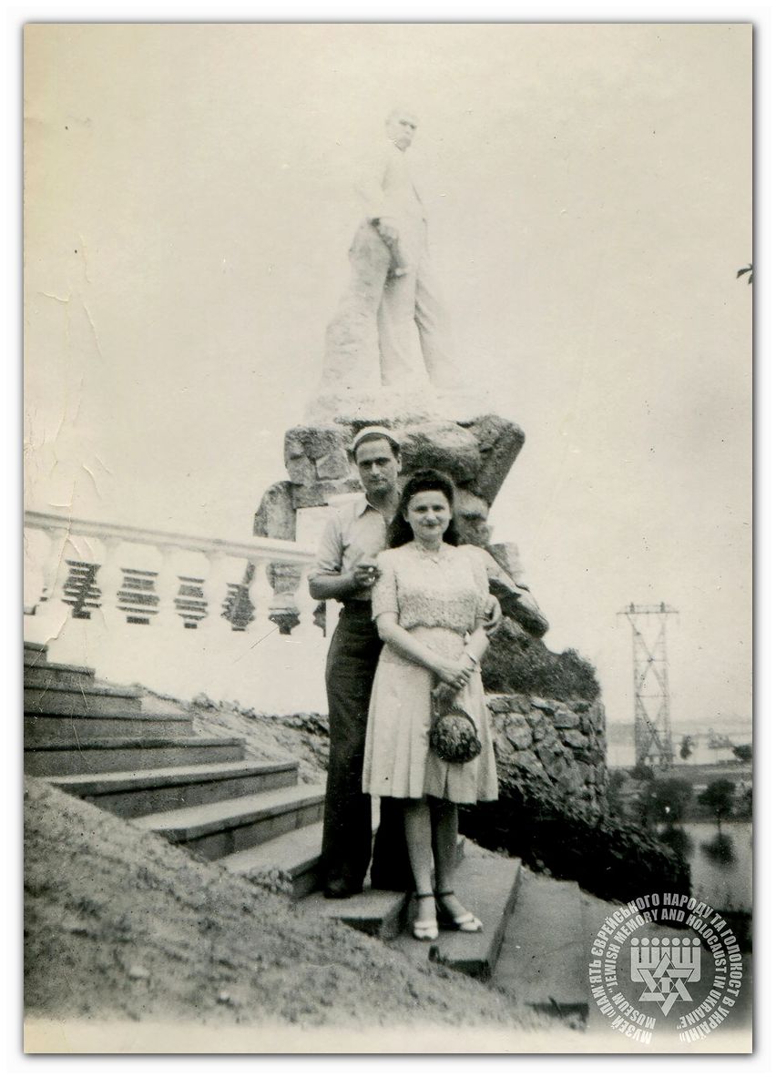 | Володимир Гельфанд із супутницею. Позаду – Пам’ятник Т. Шевченку (1949 р.) | ||||||||||