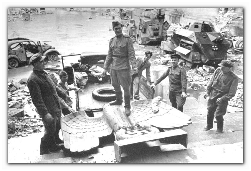 Когда Красная Армия вошла в Берлин — в «логово фашистского зверя», как писала советская пресса — лозунги на плакатах гласили: «Солдаты, вы на немецкой земле. Пробил час мести!»