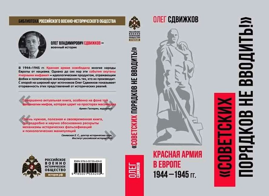 Уникальная книга и её автор Как сообщил профессор Никифоров, в 2021 году Российское военно-историческое общество (РВИО) начало новый издательский проект под названием «Библиотека Российского военно-исторического общества», в рамках которого и вышел в текущем году свет сборник статей военного историка Олега Сдвижкова «Советских порядков не вводить: Красная Армия в Европе 1941– 1945». Эта книга посвящена освободительной миссии Красной Армии в Европе в ходе Второй мировой войны, а также месту этих событий в современной политике. Книга эта действительно уникальна. И, прежде всего, потому, что она писалась не как историческая публицистика на злобу дня, а собрана из научно-исторических статей автора, созданных строго на основе документальных свидетельств эпохи и их скрупулезного исторического анализа, но, разумеется, адаптированного для массового читателя. И парадокс: написанная задолго до нынешних событий, связанных с развязанной Западом русофобством, каждая её страница чрезвычайно актуальна, ибо чётко свидетельствует: ненависть современной Европы к России имеет глубокие нацистские корни. О чём эта книга? В ней Олег Сдвижков аргументировано разоблачает западные попытки создания «чёрных мифов» о Красной Армии в период Второй мировой войны и исследует механизмы их внедрения в современную массовую культуру. И вот, что важно отметить: автор книги великолепно, что называется, из первых уст знает материал, о котором пишет. Это очевидно из его биографии. Олег Владимирович Сдвижков родился в 1964 году в Подмосковье. В 1989 году окончил исторический факультет Московского областного исторического института имени Н.К. Крупской. А затем судьба распорядилась так, что он длительное время проживал в США. Великолепно владеет английским и ещё несколькими иностранными языками. В период жизни в США он заинтересовался вопросом научной обоснованности создаваемого в западных СМИ и историографии образа Красной Армии как «армии насильников» и оккупантов Восточной Европы. После возвращения в Россию в 2009 году Олег Владимирович закончил аспирантуру Института истории и политики Московского педагогического государственного университета. Участвовал в исследовательском проекте об освободительной миссии Красной Армии в Европе в 1944 – 1945 годах. Соавтор большой монографии на эту тему, а также – автор ряда публикаций о приёмах и методах, применяемых в англоязычных СМИ и историографии для создания негативного образа Красной Армии. Так что книга «Советских порядков не вводить: Красная Армия в Европе 1944–1945 годы» – это своеобразный итог многолетней и кропотливой работы автора по данной тематике. Собранные под обложкой книги материалы условно можно разделить на две тесно связанные между собой части: в первой дано изложение основных событий, непосредственно отражающих ход освободительной миссии Красной Армии, во второй представлены статьи, посвящённые негативной политизации Западом истории этой освободительной миссии и созданию «чёрных мифов» о ней. В качестве приложения к монографии опубликована часть дневника Захара Аграненко (Ерухимовича), посвящённая его поездке в Восточную Пруссию в марте 1945 года – прямое свидетельство очевидца отношений местного населения и Красной Армии в то непростое время. – Сознательный уход автора от линейного (хронол