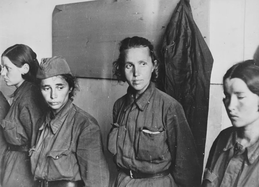 მისი პერსპექტივის შესახებ ... ბანაკის მცველები ყოფილი სამხედრო ტყვეებისა და ბანაკის პოლიციელებისგან განსაკუთრებით ცინიკურად იყვნენ განწყობილნი სამხედრო ტყვე ქალების მიმართ. ისინი აუპატიურებდნენ ტყვეებს ან სიკვდილის საფრთხის ქვეშ აიძულებდნენ მათთან თანაცხოვრებას. სტალაგში No337, ბარანოვიჩის მახლობლად, 400-მდე სამხედრო ტყვე ქალი ინახებოდა მავთულხლართებით სპეციალურად შემოღობილ ტერიტორიაზე. 1967 წლის დეკემბერში, ბელორუსიის სამხედრო ოლქის სამხედრო ტრიბუნალის სხდომაზე, ბანაკის მცველის ყოფილმა უფროსმა A.M. Yarosh-მა აღიარა, რომ მისმა ქვეშევრდომებმა გააუპატიურეს ქალთა ბლოკის პატიმრები. მილეროვოს ტყვეთა ბანაკში ასევე იყვნენ პატიმარი ქალები. ქალთა ყაზარმის კომენდანტი იყო გერმანელი ვოლგის რეგიონიდან. საშინელი იყო ამ ყაზარმში დაღუპული გოგონების ბედი: „პოლიცია ხშირად უყურებდა ამ ბარაკს. ყოველდღე, ნახევარ ლიტრზე კომენდანტი აძლევდა ნებისმიერ გოგონას ასარჩევად ორი საათის განმავლობაში. პოლიციელს შეეძლო მისი ყაზარმებში წაყვანა. ისინი ორნი ცხოვრობდნენ ოთახში. ამ ორი საათის განმავლობაში მას შეეძლო მისი გამოყენება ნივთად, შეურაცხყოფა, დაცინვა, კეთება რაც მოესურვებოდა. ერთხელ, საღამოს გადამოწმებისას, თავად პოლიციის უფროსი მოვიდა, მთელი ღამე აჩუქეს გოგო, გერმანელმა ქალმა შესჩივლა, რომ ეს „ნაბიჭვრები“ შენს პოლიციელებთან წასვლას ერიდებიანო. მან ღიმილით ურჩია: „ვისაც არ უნდა წასვლა, მოაწყეთ „წითელი მეხანძრე“. გოგონა გაშიშვლებული იყო, ჯვარს აცვეს, იატაკზე თოკებით შეკრა. შემდეგ აიღეს დიდი წითელი ცხარე წიწაკა, შემოატრიალეს და გოგონას საშოში ჩასვეს. დატოვეთ ამ მდგომარეობაში ნახევარი საათის განმავლობაში. ყვირილი აკრძალული იყო. ბევრ გოგონას ტუჩები უკბინეს - ყვირილს იკავებდნენ და ასეთი დასჯის შემდეგ დიდი დროვერ მოძრაობდა. კომენდანტი, ზურგს უკან მას კანიბალს უწოდებდნენ, სარგებლობდა შეუზღუდავი უფლებებით დატყვევებულ გოგოებზე და სხვა დახვეწილი დაცინვით გამოდიოდა. მაგალითად, „თვითდასჯა“. არის სპეციალური ძელი, რომელიც მზადდება ჯვარედინი სიმაღლით 60 სანტიმეტრი. გოგონა უნდა გაშიშვლდეს, ძელი ჩასვას ანუსში, ხელით ჯვარს დაეჭიროს, ფეხები სკამზე დაადო და სამი წუთის განმავლობაში დაიჭიროს. ვინც ვერ გაუძლო, თავიდანვე უნდა გაიმეორა. რა ხდებოდა ქალთა ბანაკში თავად გოგონებისგან გავიგეთ, რომლებიც ყაზარმიდან დაახლოებით ათი წუთი სკამზე დასაჯდომად გამოვიდნენ. ასევე, პოლიციელები ტრაბახით საუბრობდნენ თავიანთ ექსპლუატაციებზე და ჭკვიან გერმანელ ქალზე. წითელი